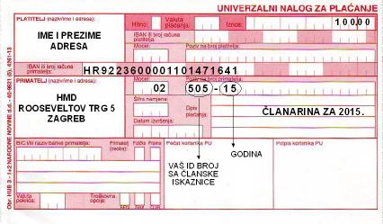 Primjer ispunjenog univerzalnog naloga za plaćenja članarine